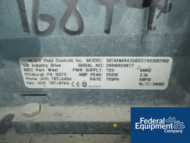 Used 1" Prominent Gear Pump, model SICAHM04350SST580D100, rated 111 gallons per hour, 1/4 hp, 115 volt motor, with controls, serial# 2000024677.