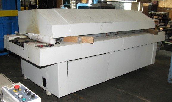 MODEL SMR 400. SERIAL # 40041. NEW IN 1993. 220 VOLTS. 140 AMPS. 350 C. ADJUSTABLE TEMP FOR: UPPER OFFLOAD BAFFLE, LOWER OFFLOAD BAFFLE, COOLING "A", REFLOW, PREFLOW (2), PREHEAT, UPPER UNLOAD BAFFLE, LOWER UNLOAD BAFFLE AND CONTROLLED EXHAUST. RAIL TRACK IS ADJUSTABLE FROM APPROX 5.5" TO 20" (OUTSIDE DIMENSION). TRACK OPENING IS APPROX 21" L TO R X 3.5" T TO B; APPROX 1" CLEARANCE ABOVE TRACK. CONTROLS INCLUDE: HOOD UP/DOWN, RAIL ADJUST, CONVEYOR OVERRIDE, FOUR E-STOPS (ONE ON EACH CORNER) AND TWO ANAFAZE SYSTEM 32 MEASUREMENT AND CONTROL MODULES. NITROGEN GAS INLET (70 PSI MAX). 6" EXHAUST DUST. OVERALL DIMENSIONS: 140" X 54" X 68" TALL. APPROX 5,000 LBS. (ITEM #1743)