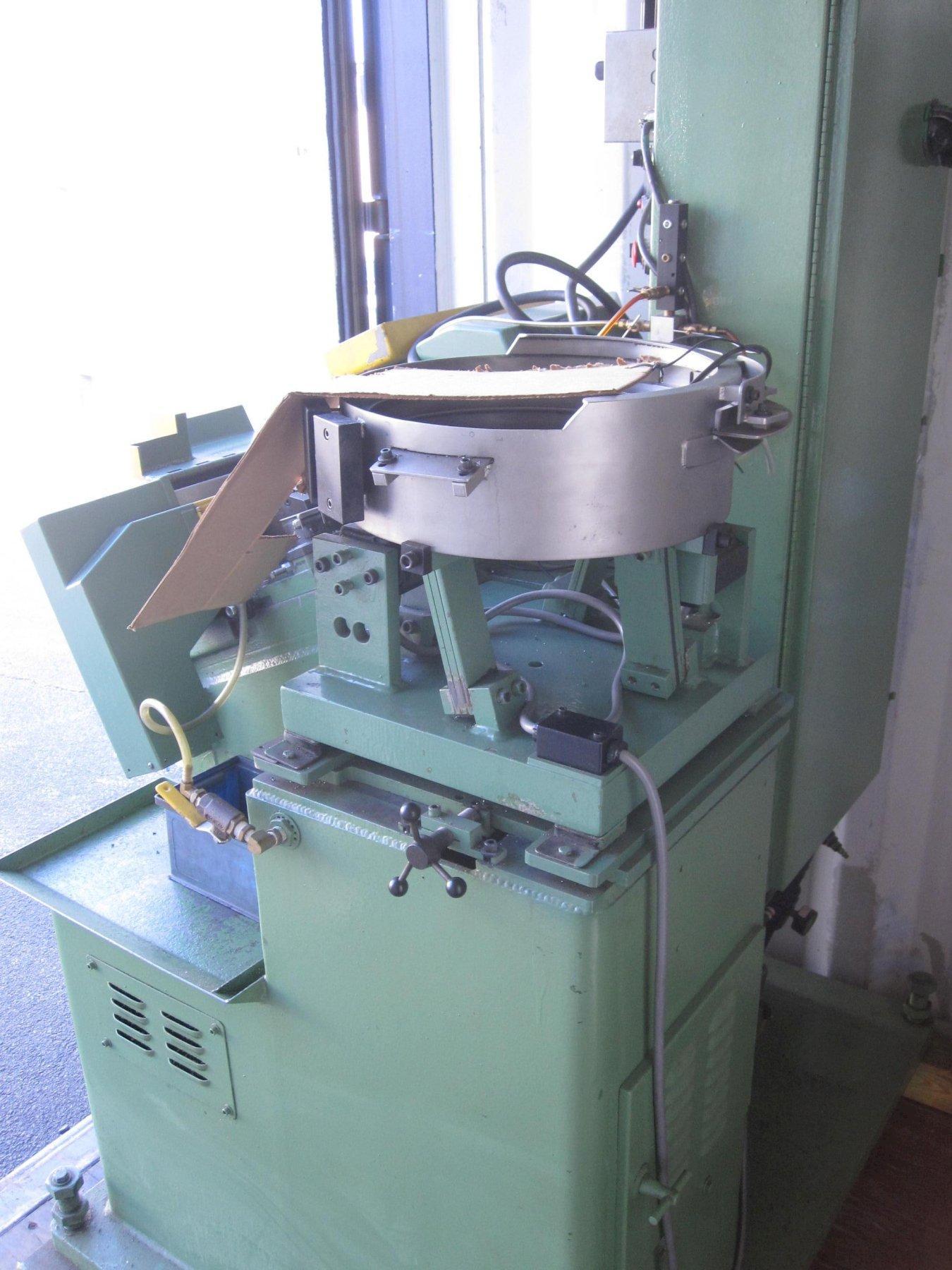 Blank Length: Up To 1-1/4″, Maximum Thread Die Length: 1-1/8″, Production Rate: 150 – 1100 PPM, Motor: 2 HP, Dies 00 and 000 Vibratory Bowl.