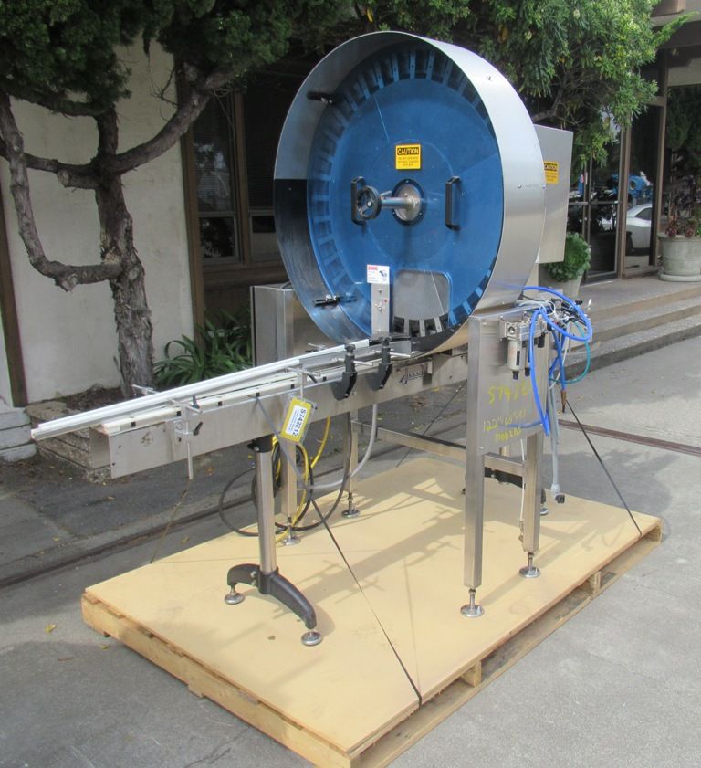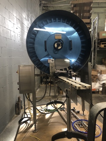 McBrady #200, 48" OD rotary chamber, inverted, air cleaner, up to 130 containers/minute