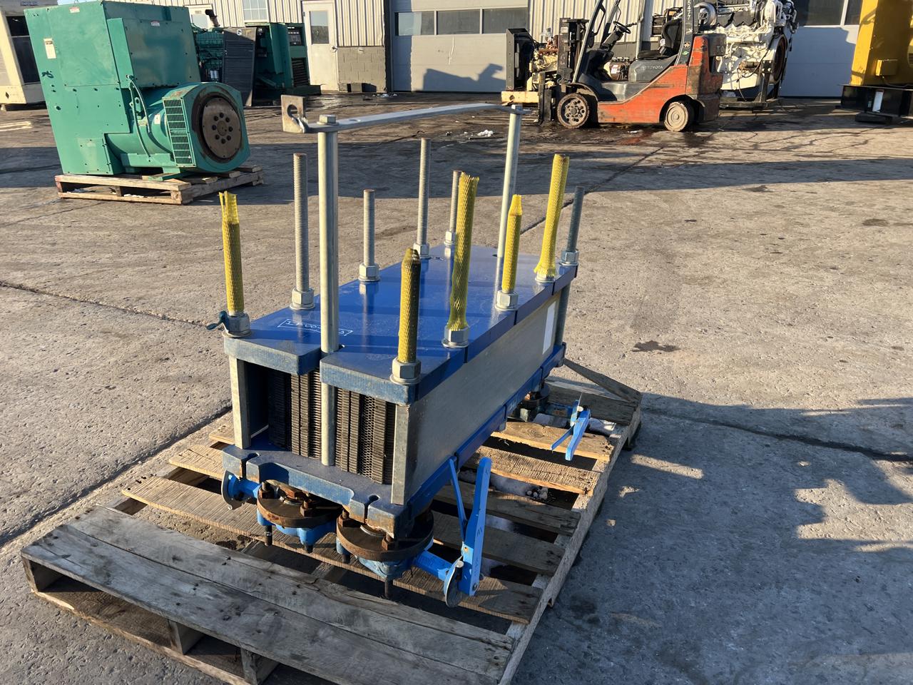 ITEM 16333: Unused THERMAL TRANSFER PRODUCTS Heat, Exchanger – EKF Series, 2-pass, design. Copper-nickel alloy tube, material. Cast iron bonnet, material. Hot oil in / Cooled oil out, (2″Ø SAE 4-bolt hydraulic flanges)., 1″ FNPT cooling water in/out connections. The carbon steel shell housing ...more