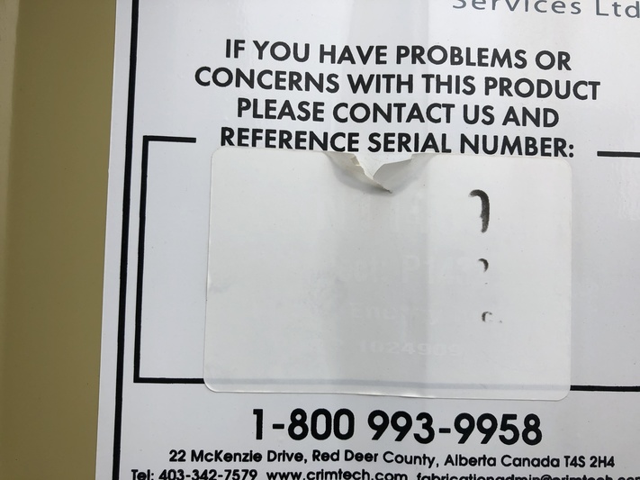 For sale is a Crimtech water transfer pump, serial number 830785.2, manufactured in 2013. This portable equipment is housed and operational status is currently disconnected. It features a metal construction and has been inspected previously with one unit available for purchase in Lloydminster, AB, Canada. Note that it does not come with a warranty.