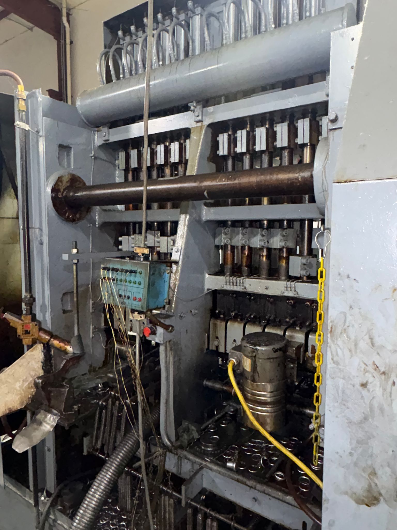 Rotem-Hyundai 2250 ton / 1000 ton Straight Side Transfer Press Line, Model: SL4-2250-4500x2400MB / SL4-1000-4500x2400MB, Main Press :, Press Type: Single-action, 4-point eccentric overdrive Mechanical Press, Capacity: Press (#1) 2250 ton and Press (#2) 1000 ton, Entry loading robot, Robot Transfer from Press #1 to ...more