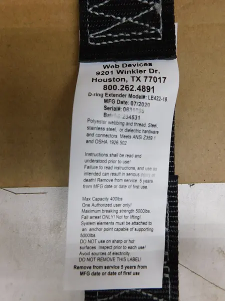 For sale is three (3) new unused Web Devices Lanyard Extender. Part number: LE422-18. 18" Extender. W/ Snap hook & D-Ring.