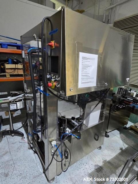 West Model PW500, ROPP pilferproof aluminum capper rated from 24 to 120 containers per minute – depending on materials, application and number of container pockets. Cap size range: 11mm to 38mm, container size range: 21mm to 54mm diameter x 50mm to 190mm high, with proper change parts. 70" long x ...more