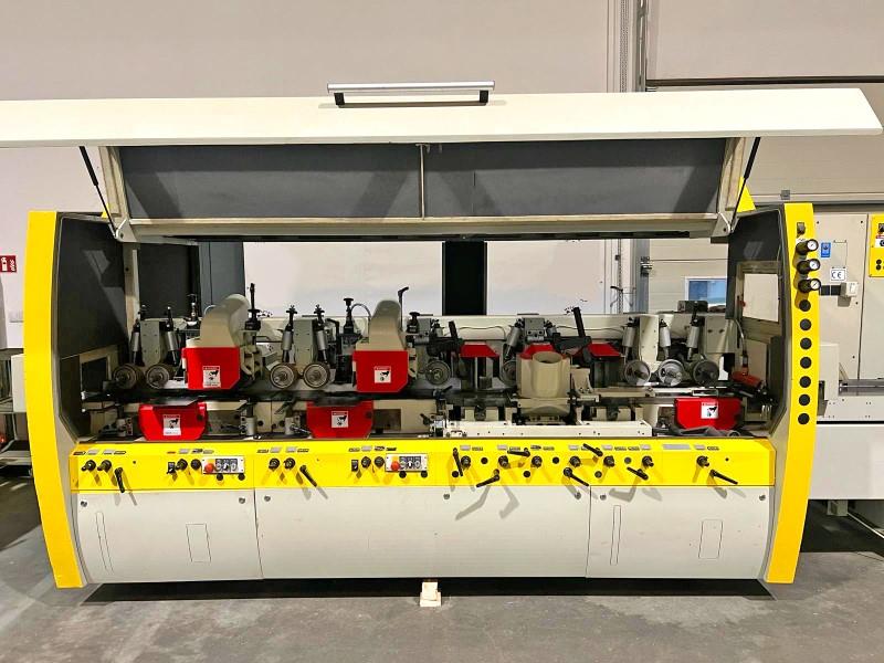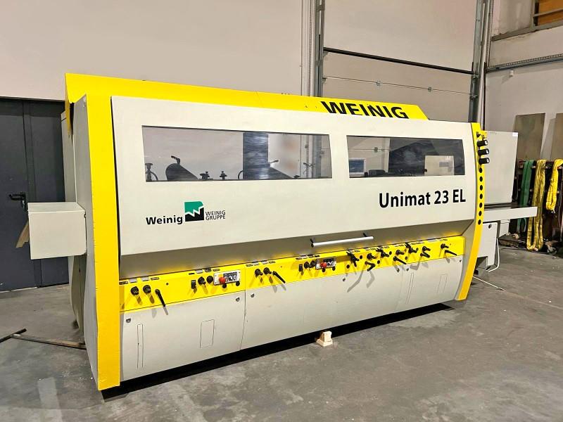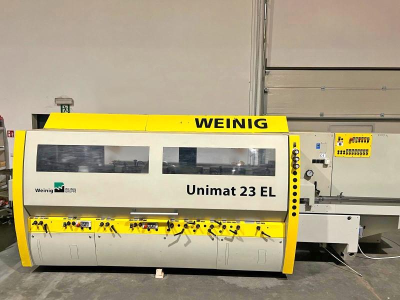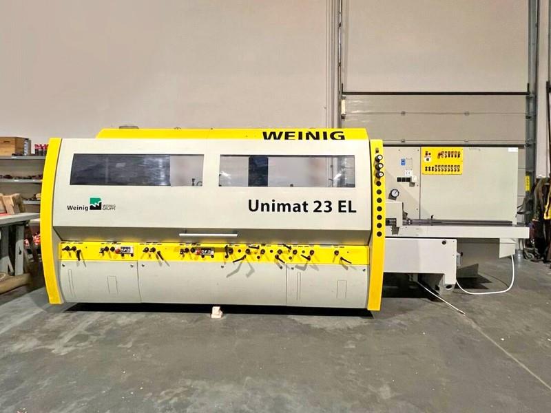 WEINIG UNIMAT 23 EL Feed Through Moulder, 8-head;Specifications: -- Head configuration: 8-Head (B-R-L-R-T-B-T-B), working capacity 230 x 160 mm (9-1/16" x 6-5/16"). -- Spindle sequence: 1. Bottom 5.5 kW (7.5 HP), 2. right 4 kW (5.5 HP), 3. left 5.5 kW (7.5 HP), 4. right 4 kW (5.5 HP), 5. top 11 kW (15 HP), 6. bottom 5.5 kW (7.5 HP), 7. top 7.5 kW (10 HP), and 8. bottom 7.5 kW (10 HP). -- Spindle dia. 40 mm. All spindles 6,000 RPM, except heads 7 & 8 8,000 RPM. All spindles with mechanical digital readouts. -- Motorized feed beam adjustment, receding chip breakers on left and top spindles. -- Variable feed speed from 6 - 36 m/Min (20 - 118 FPM) with 5.5 kW (7.5 HP) motor. Overhead feed wheels with pneumatic pressure, (3) powered table rollers in machine table. Cardan drive, chainless, maintenance-free. -- Machine Tables: Made of hardened steel. Infeed straightening table is 2,000 mm (6') with adjustable fence & adjustable outfeed table; (1) side pressure roller mounted to infeed table. -- Complete with: ● Short stock attachment. ● Central lubrication, and table bed lubrication pump. ● Full sound/safety enclosure. ● Manual lubrication pump. ● Automatic star delta starters. ● CE Compliance. ● (3) Emergency stop buttons. Note: EX-FACTORY’s Logistic Department is experienced and setup to provide “Full Service Logistics"; from Overseas Suppliers to your Door. …Packaging, Container Loading, Ocean Freight, Marine Insurance (door to door), US or Canadian Customs, Duty and domestic shipping to your Plant Door.