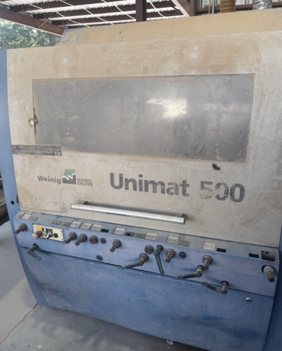 WEINIG Unimat 500 Feed Through Moulder; Heavy-Duty cast-iron construction - reduces vibrations for better surface quality5-Heads, (R-L-R-T-B), working capacity 230 x 120 mm (9-1/16" x 4-3/4"). -- Head Sequence: 1. right & 2. left share 5.5kW (7.5 HP) motor, 3. right 5.5 kW (7.5 HP), 4. top 5.5 kW (7.5 HP), and 5. ...more