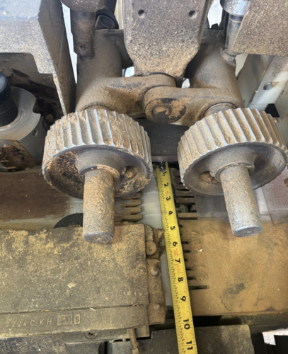 Weinig Model Unimat 23E Moulder Capacity: 9" x 6" (Horizontal Spindles Currently 10.5" Cutterheads that have a recessed bore so that Spindle Nut Secures) Head Configuration: Bottom: 11kW (14.75HP) Right/Left: 11kW (14.75HP) Top: 11kW (14.75HP) Top : 15kW (20HP) Bottom: 15kW (20HP) Feed Motor: 4kW (5HP) Spindle ...more