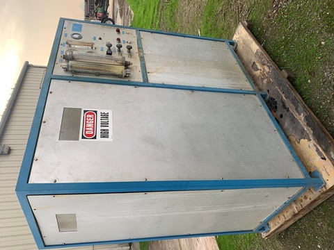 Welsbach Model WL-50-S Ozone Generator rated for a capacity of 5 pounds per day, serial number 2212. Rated for 230 Volt, 15 Amps, 60-cycle. Includes gauges and readouts for ozone flow, line pressure, ozonator pressure, water flow and power level. Also includes openings for water inlet, ozone outlet A, air inlet, water outlet, ozone outlet B and ozone sample.