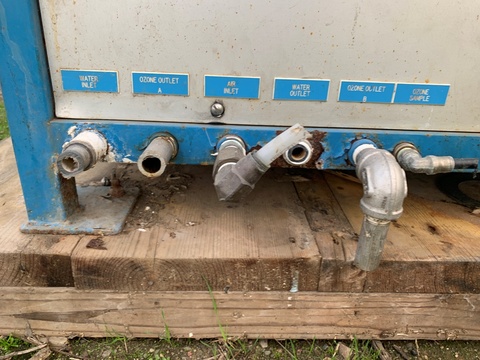 Ozocan Corporation #7, Ozone Generating System, 2 mg/L capacity, 100 GPM, 6000 Nominal Flow capacity, 2.8 lbs/day Ozone capacity, 30 gallon air receiver & 75 gallon reservoir Tanks, 1/3 HP pumps, 230/575 V, 1998