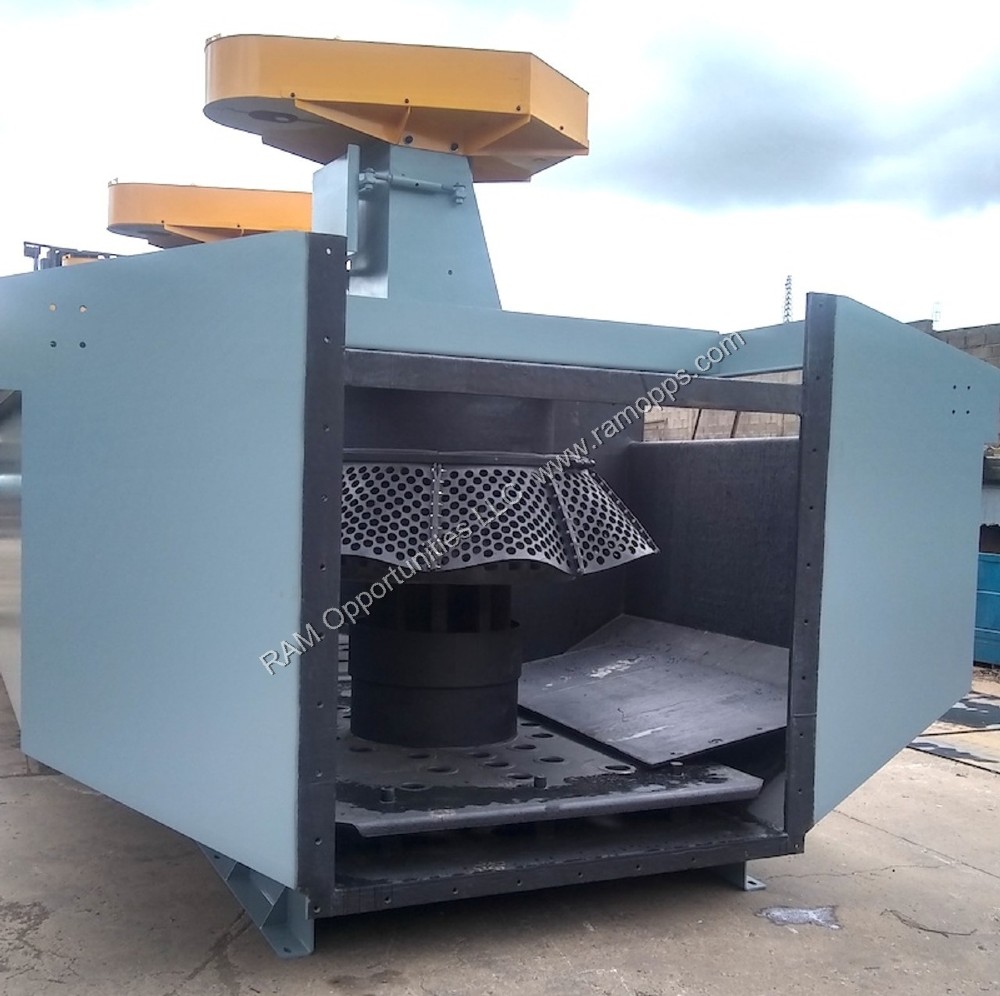 - Two banks of two cells, four cells of 72 cu ft each, unused, - Four new flotation mechanisms, - Two used flotation mechanisms, - Complete with impellers, diffusers and dispenser skirts.