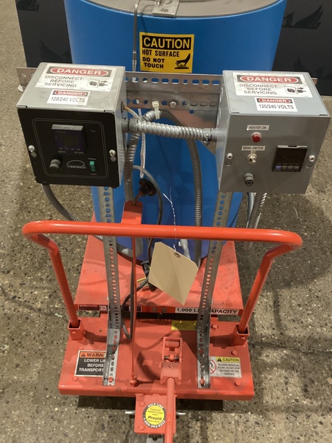 Configuration: Heated kettle mounted on mobile lift table with control enclosure