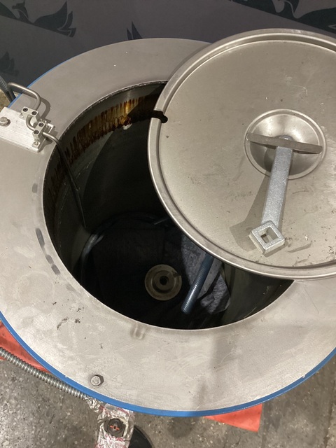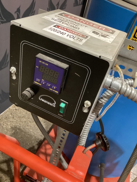 This listing is for a used Wenesco high temperature industrial melting kettle with lifting table.
