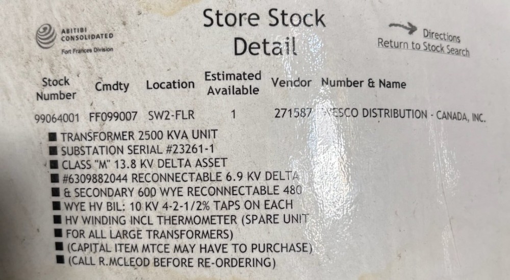 2500 KVA 13800 Primary, 600 Secondary, Polygon Transformer Manufacturer: Polygon kVA: 2500.0 Primary Voltage: 13800 Secondary Voltage: 600 Request a Quote 3 For Sale by BMI Group Surplus Record Dealer Since 2025 Contact Seller Fort Frances, ON Gord Mcdowell 705-20...> Show Seller's Phone Number 705-206-2458 Let the seller know you found their listing on Surplus Record! View More BMI Group 's ListingsDescription We have a Polygon 2.5 MVA TransformerThis transformer was a spare unit and is stored in a heated dry warehouse13.8 KV Primary - reconeectable to 6.9KV600 Volts Secondary - reconnectable to 480 volts Request More Information from SellerGet Your Price from BMI Group! "*" indicates required fieldsName*Company*Email* PhoneZip / Postal Code*QuestionMake an OfferRequests Send me a shipping quote I am interested in financingSend Copy Email me a confirmation of this inquiryBuyer Protection Use our partner Escrow.com to buy or sell equipment safelyBuyer Protection Send me info about buyer protectionThis field is hidden when viewing the formDealer Email Buyers Who Viewed This Listing Also Viewed …JUST ADDED! 2500/3333 KVA 13800 Delta Primary, 600Y/347 Secondary, Dry type, indoor N1Category: 60 Hz Three Phase TransformersSeller: MGB TransformersLocation: Saint-Pie, QC 2500/3750 KVA 13800 Primary, 2400 Secondary, Square D, dry type transformerCategory: 60 Hz Three Phase TransformersSeller: Casey Equipment/ElectricalLocation: Pittsburgh, PA Mfr: Square D 2500/2800 KVA 13800 Delta Primary, 480 Delta Secondary, SUB, Unused(shipment available in 10 days)Category: 60 Hz Three Phase TransformersSeller: Core TransformersLocation: SENECA, SC 2500 KVA 13800 Primary, 480/277 Secondary, General Electric #M156438B, Substation Dry Type Transformers 2500KVA-CT-06450Category: 60 Hz Three Phase TransformersSeller: Quantum TechnologyLocation: Shippensburg, PA Mfr: General Electric*Local Pickup Does Not Include any Palletization* Item Located in: Meriden CT 06450, '*Handling times for freight shipments average 5 days, but may vary depending on size, weight, location, and current trucking conditions. This does not include shipping time.*, Item Dimensions - L X W X H - 92X70X100, If youre on ...more 2500/2800/3125/3500 KVA 13800 Delta Primary, 2400Y/1385 Secondary, 3 phase, Substation TransformerCategory: 60 Hz Three Phase TransformersSeller: Maddox Industrial TransformerLocation: Greenville, SCShare × "*" indicates required fieldsYour Name*Your Email* Recipient's Email* Note to Recipient