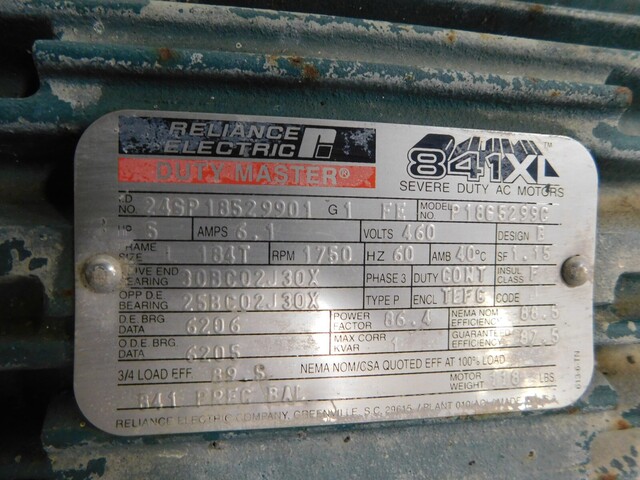 - Power Rating: MOTOR: 5 HP, 3 PH, 1750 RPM, 60 HZ, 460 V