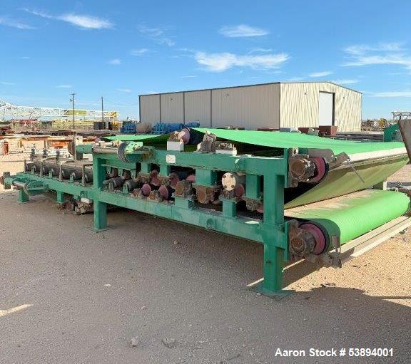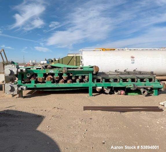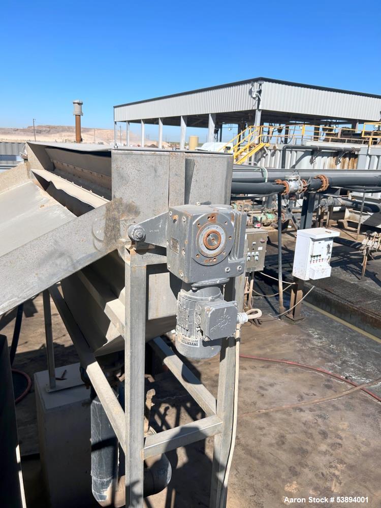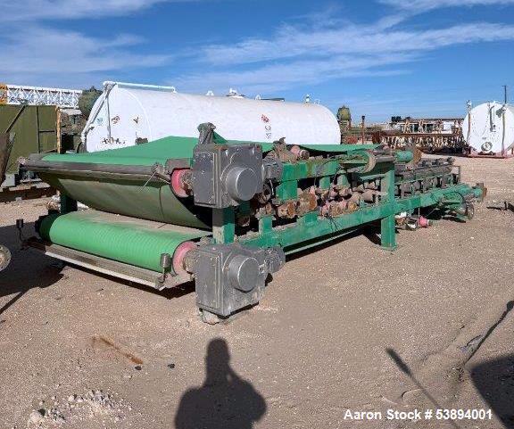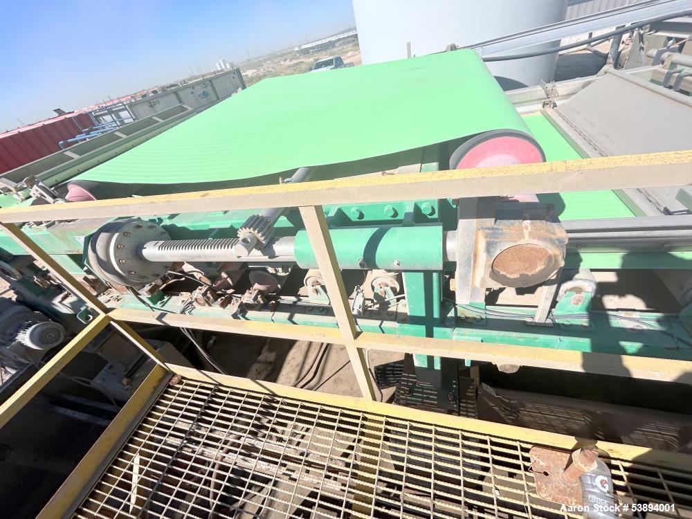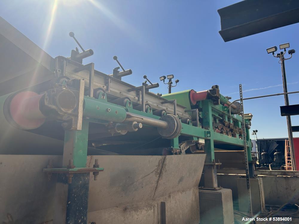 WSI #MM-2200-EXT-Gravity, twin wire mud pr, 250 GPM, 2017 Model: MM-2200-EXT-GRAVITY Year: 2017 Description: twin wire mud pr Stock # 53894001 Request a Quote 10 For Sale by Aaron Equipment Co Surplus Record Dealer Since 2024 Contact Seller Schaumburg, IL Ken Matuszak 708-41...> Show Seller's Phone Number 708-412-6077 Let the seller know you found their listing on Surplus Record! View More Aaron Equipment Co 's ListingsDescription used- wsi 2.2 meter extended gravity twin wire mud press, model mm-2200-ext gravity. designed and built to receive pre-processed conditioned" mud sludge flow and remove a major portion of the water (filtrate) from the mud. the average design flow of the 2.2 meter unit is 250 gallons per minute (gpm). unit functions to dewater sludge by entrapping a uniform thin layer of conditioned sludge between two endless, porous synthetic belts. the feed box receives conditioned mud sludge flow from the upstream sludge conditioning system and distributes it in a uniform layer over the belt as the belt moves the sludge layer forward from feed box onto the gravity zone. the sludge moving through gravity zone is initially dewatered as gravity pulls the filtrate from the sludge layer through the porous belt to the catchment pan below. the wedge zone entraps the gravity thickened sludge forming a sludge sheet between the two belts. filtrate (liquid extracted from the sludge) is pressed from the entrapped sludge cake as it traverses the length of the wedge zone to the doctor blades. mechanical pressure is applied to the belts to force a major portion filtrate from the sludge as it traverses the machine experiencing ever increasing pressure along its path to the dried sludge discharge point. dry weight is 35,000 lbs; serial # wbp-2.2m-25.0-004, new in 2017. Request More Information from SellerGet Your Price from Aaron Equipment Co! "*" indicates required fieldsName*Company*Email* PhoneZip / Postal Code*QuestionMake an OfferRequests Send me a shipping quote I am interested in financingSend Copy Email me a confirmation of this inquiryBuyer Protection Use our partner Escrow.com to buy or sell equipment safelyBuyer Protection Send me info about buyer protectionThis field is hidden when viewing the formDealer Email Buyers Who Viewed This Listing Also Viewed … Ashbrook #Winklepress, 2.2 meter belt p, mobile, turn-key dewatering systemCategory: Dewatering PressSeller: Global Equipment InternationalLocation: Chalfont, PA Mfr: AshbrookModel: WINKLEPRESS110280, Used Ashbrook Winklepress, 2.2 meter wide belt press, mobile., Discharge Conveyors. Mobile, turn-key dewatering system., Belt Press, water sump, electric panel, and catwalks are, mounted to the trailer which is included with the sale of the unit., Unit ran on average of 180 GPM with a maximum of 200 GPM. ...more Fournier #4(6)-900/6000CV, rotary dewaterin, 3" inlet, 100 gal/min, 2011Category: Dewatering PressSeller: Revelation MachineryLocation: Chicago, IL Mfr: FournierModel: 4-900/6000CVYear: 2011Make: Fournier, Model: 4(6)-900/6000CV, Year: 2011, Machine Location: Upon Request, -Dewatering Area: 21.55 square feet, -Sludge Inlet: 3″ Diameter, -Sludge Flow Rate: Up to 100 Gallons per Minute, -Cake Discharge: 6″ Victaulic Connection, -Feed Concentration: 1-6% Total Solids, -Throughput: Up to 9.5 Dry ...more Frontier Technologies Dewatering Press, 1 meter wide bel, Stainless Steel frame, 15 rollers on topCategory: Dewatering PressSeller: D'Angelo InternationalLocation: Bellingham, WA Mfr: Frontier- Manufactured by Frontier Technologies in USA, - 1 meter wide belt, - Stainless Steel Frame, - 15 Rollers On Top, - 7 Rollers On Second Level, - 4 Rollers On Bottom Level, - Drive Motor : 5 HP, - Removed and ready to inspect or ship, - Includes control panel. Hycor Hypress #HP1020, ram dewatering p, 10" diameter, Stainless SteelCategory: Dewatering PressSeller: Arlington MachineryLocation: Lake Zurich, IL Mfr: Parkinson TechnologiesModel: REVX-E NM LT 40Used Hycor Hypress Dewatering Press, Model HP1020 Ram style dewatering press 10" Diameter Stainless Steel. Hymac #PT-13-5, twin wire dewate, (3) tension rolls, 12' rolls, (3) pinch rollsCategory: Dewatering PressSeller: Lenmark IndustriesLocation: Langley, BC Mfr: HymacModel: PT-13-5SKU: 120449, Model: PT-135, Condition: Used, Additional :, Components & s:, - 12ft. wide Rolls, - 3 x Tension Rolls, - 3 x Pinch Rolls, - Drive Roll Set w/ Dual 150HP Drives, - HYMAC 345SR 5.636:1, 139HP rated gear reducers.Share × "*" indicates required fieldsYour Name*Your Email* Recipient's Email* Note to Recipient