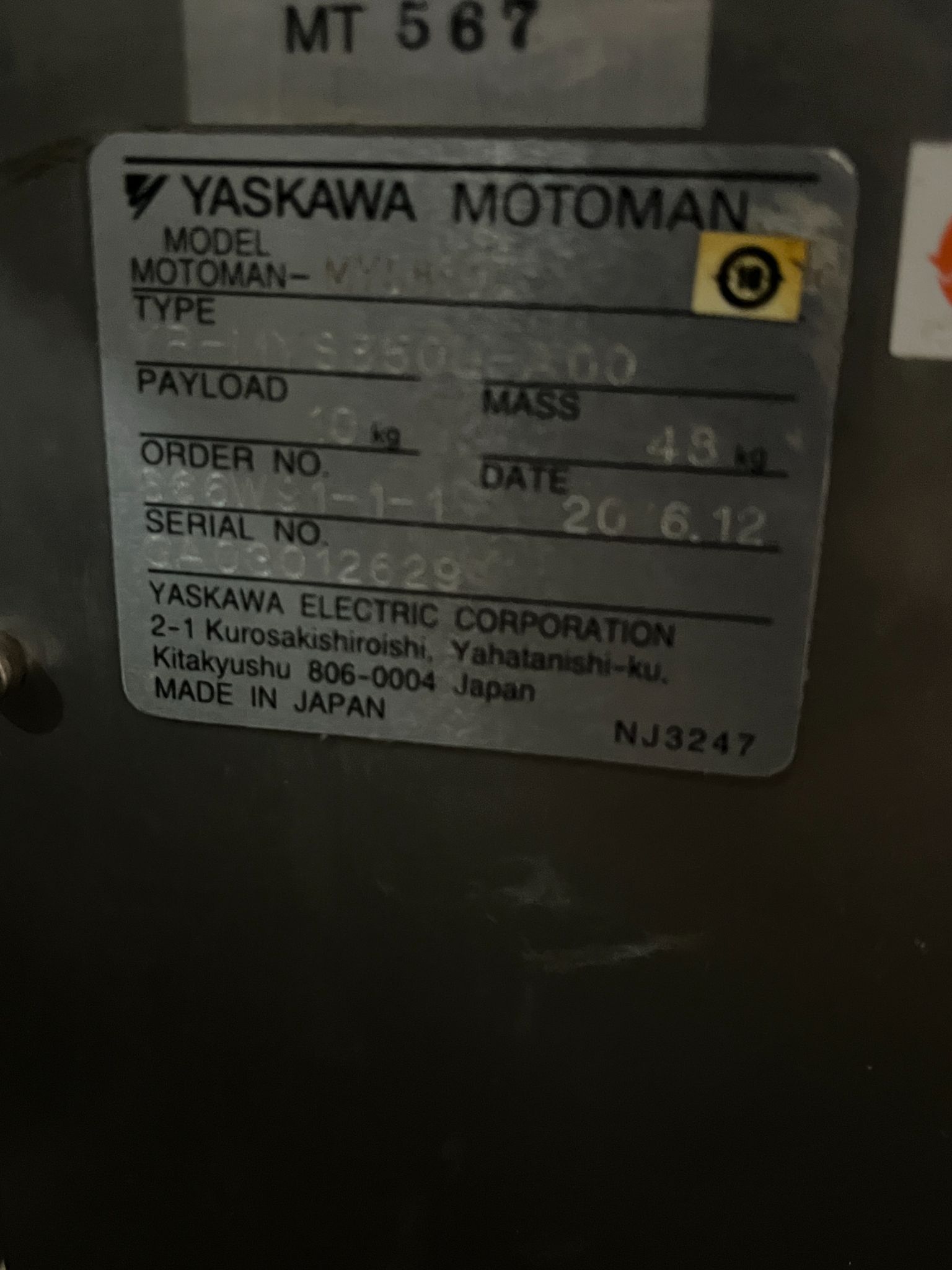 YASKAWA MOTOMAN-MH24 + DX200 robot, 2018 model, in used condition. Ideal for precision tasks, enhancing automation with reliable performance. A valuable addition to any industrial setup seeking efficiency., Spec Sheet, 2018 YASKAWA MOTOMAN-MH24 + DX200, # Axis. 6, Payload. 24 kg, Dimensions. 48 x 48 x 48, Weight. 1225 ...more