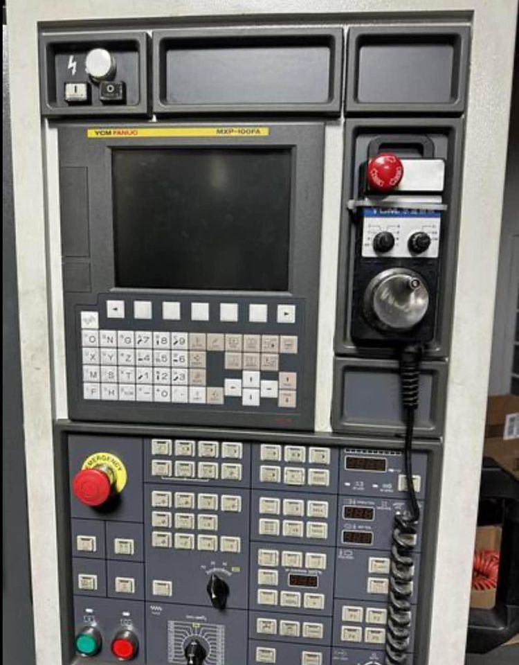 Used Vertical Machining Center available. Features include 50" X, 20.5" Y, 21.3" Z travel, 15 hp, 10,000 RPM spindle, 3-axis operation, 24 ATC, and Fanuc MXP-100FA CNC Control with Chip Conveyor.