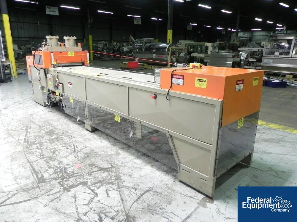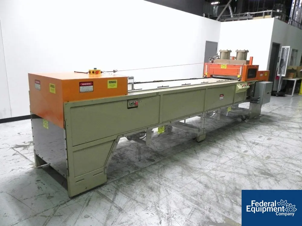 Used ZED Industries inline blister sealer card machine, model 15-111, the 15-111 is an automatic inline heat sealer designed specifically for high volume packaging applications, this inline design provides convenient height work stations (no platforms), spacious access from both sides of the machine and an expandable work area, features include chain index system and a precision four-post heat seal press with ground platens and long bushings to ensure parallelism, an operator interface panel allows for set-up or adjustment of operating parameters, this machine is also available in expanded widths or extended lengths to accommodate the addition of automatic feeders or additional product loaders, ideal for packaging such as clinical trials, child resistant, pharmaceutical, medical packaging, carded blisters, clamshells and many more, maximum seal area is 18" x 24", manual load, previous owner reports updated safeties, serial# 01495456.