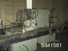Filamatic, Model VLD, 4 head inline piston filler. Rated from 12 to 60 bottles per minute with a fill range of 60ml to 520ml with proper change parts – depending on materials, application and machine configuration. 96" long by 3¼" wide Delrin conveyor, star wheel indexing, adjustable guide ...more